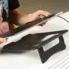 Appuyez simplement vers le bas, tirez la plaque de support en arrière, comme indiqué, et ajuster jusqu’à 90 degrés pour un support stable. Placez votre tablette sur le support et débutez votre création !
