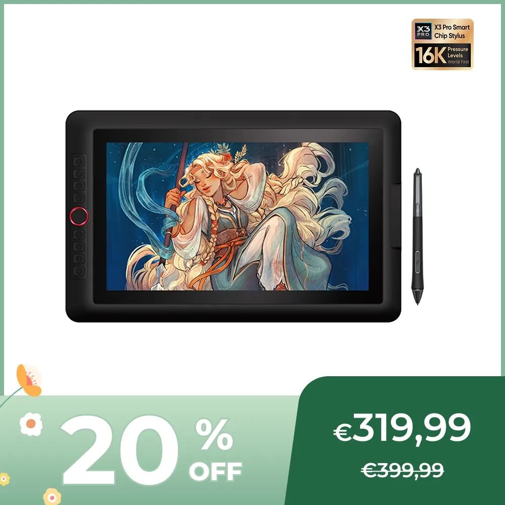 Écran de 15,4 Pouces | X3 Pro Stylet à Puce Intelligente | 16K Niveaux de Pression | Touches Express à Molette Rouge
