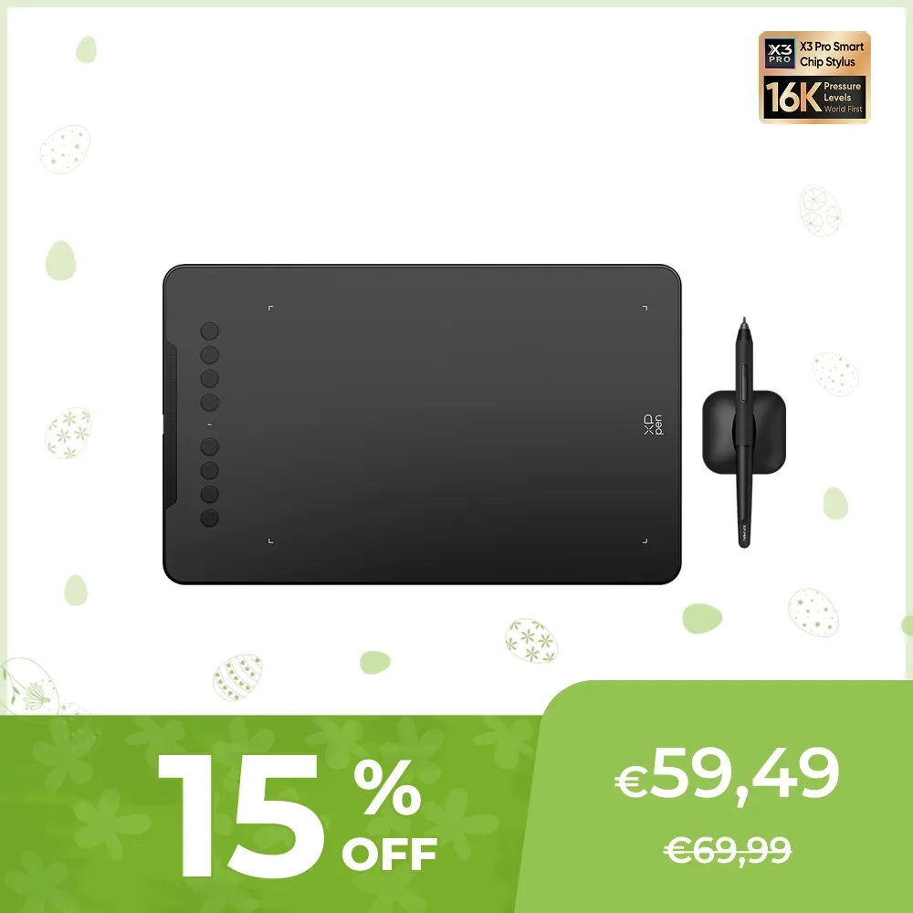 La tablette large Deco 01 V3 est grande et lumineuse ! Il dispose d'une surface de travail de 10 x 6,25 pouces. Ce qui vous donne plus d'espace pour créer et réaliser des tâches.
