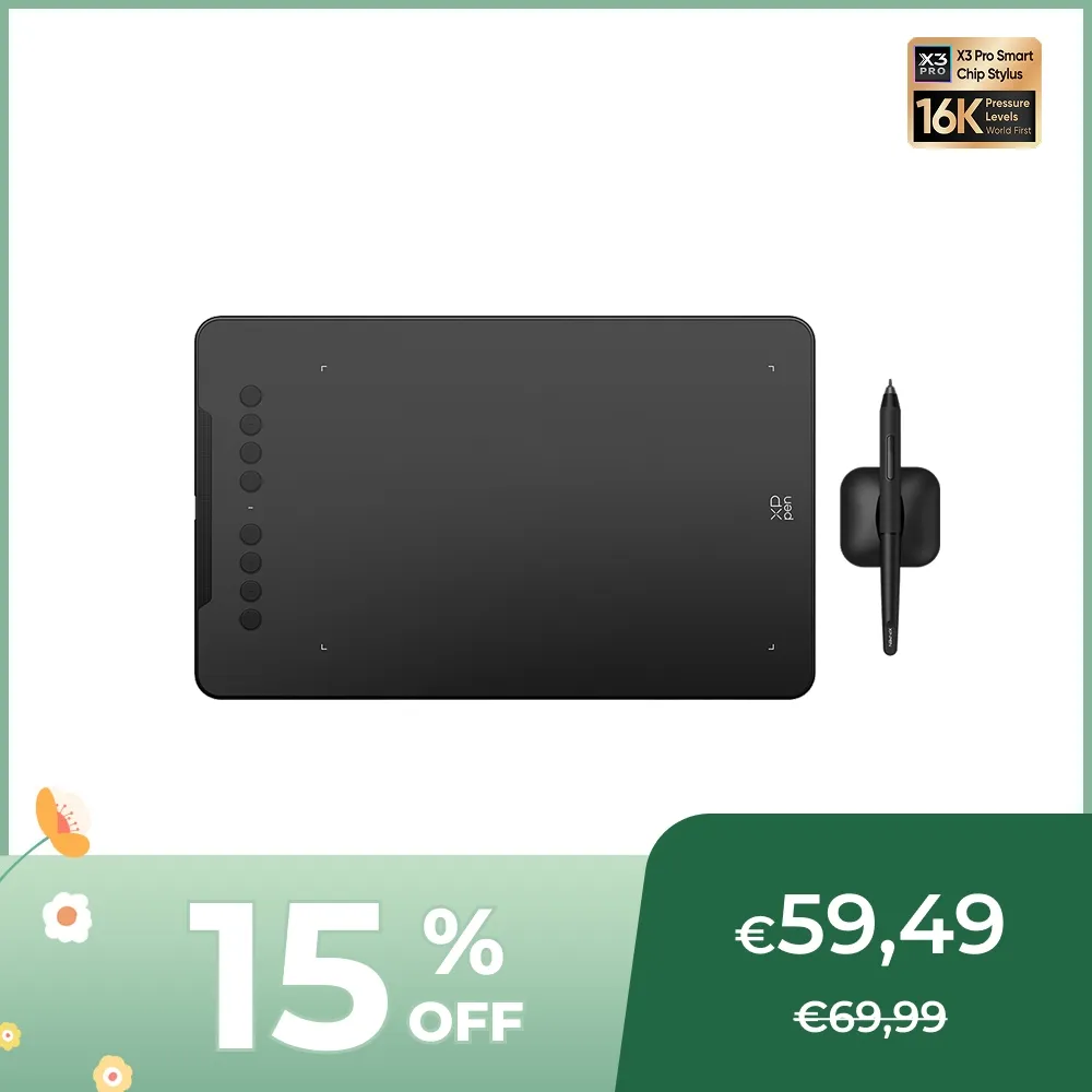 La tablette large Deco 01 V3 est grande et lumineuse ! Il dispose d'une surface de travail de 10 x 6,25 pouces. Ce qui vous donne plus d'espace pour créer et réaliser des tâches.