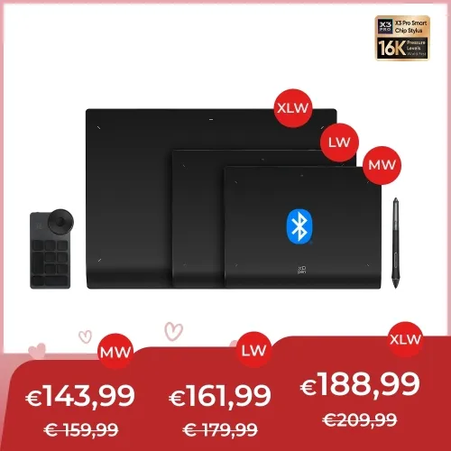 Découvrez la nouvelle Série de Tablette à Stylet Deco Pro (2e Génération), équipé d’un Stylet à Puce intelligent X3 Pro. Minutieusement développé par le Laboratoire X-Innovation sous XPPen, cette combinaison de pointe est un énorme bond en avant dans la technologie CG pour libérer votre inspiration et laisser vos doigts voler sur des œuvres d’art.