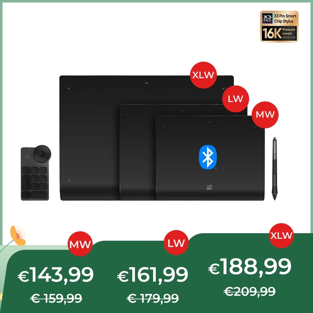 Découvrez la nouvelle Série de Tablette à Stylet Deco Pro (2e Génération), équipé d’un Stylet à Puce intelligent X3 Pro. Minutieusement développé par le Laboratoire X-Innovation sous XPPen, cette combinaison de pointe est un énorme bond en avant dans la technologie CG pour libérer votre inspiration et laisser vos doigts voler sur des œuvres d’art.