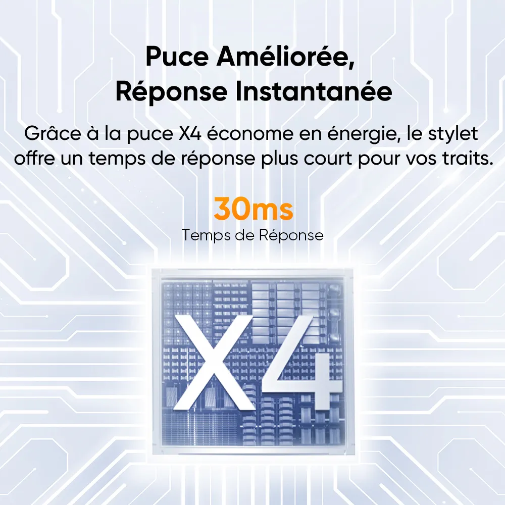 Propulsé par la toute nouvelle puce X4, le révolutionnaire X4 stylet à puce intelligente combine performances de pointe et design élégant. Il est conçu pour transformer vos traits en une perfection artistique.